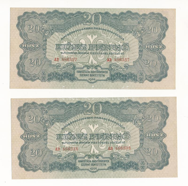 1944. 20P "A Vöröshadsereg Parancsnoksága" (2x) sorszámkövetők "AB 486337 - AB 486338" T:AU,XF nagyobb sarokhajlás