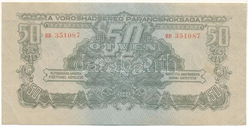 1944. 50P "A Vöröshadsereg Parancsnoksága", "BB 351087" T:AU,XF több k...