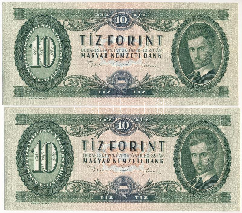 1975. 10Ft (2x) sorszámkövetők "A 114 108123 - A 114 108124" T:F szép ...