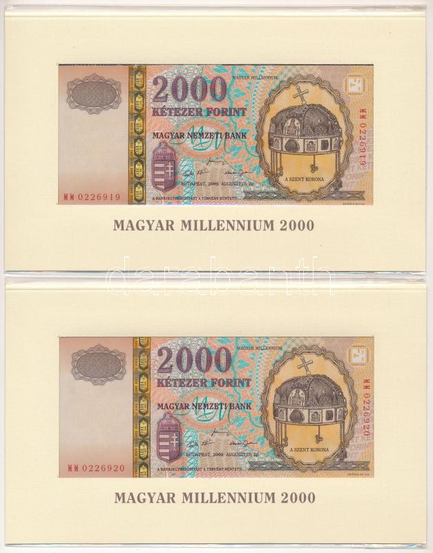 2000. 2000Ft "Millennium" bontatlan díszcsomagolásban (2x) sorszámköve...