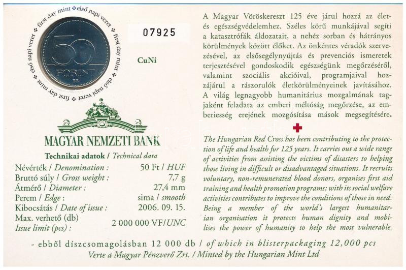 2006. 50Ft Cu-Ni "125 éves a Magyar Vöröskereszt" első napi veret sorszámozott emléklapon "07925" T:UNC