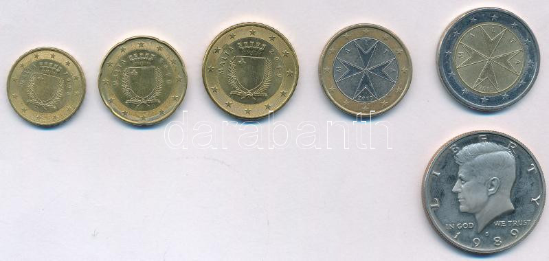 Vegyes: Amerikai Egyesült Államok 1989S 1/2$ Cu-Ni "Kennedy" + Málta 2008-2019. 10c-2E (5xklf) T:AU (PP), AU,XF Mixed: USA 1989S 1/2 Dollar Cu-Ni "Kennedy" + Malta 1989S 1/2 Dollar Cu-Ni "Kennedy" + Malta 2008-2019. 10 Cents - 2 Euros (5xdiff) C:AU (PP),AU,XF