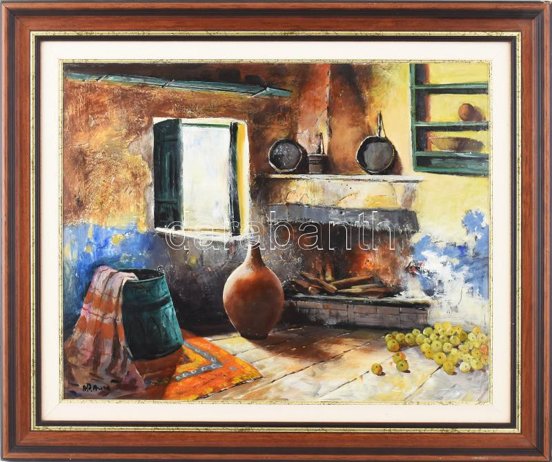 Adilov Alim (1963-): Enteriőr. Olaj, farost. Jelzett. 40x50 cm. Dekora...