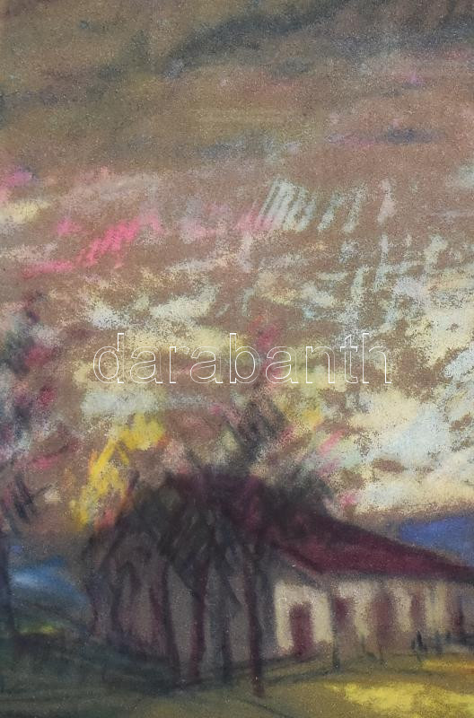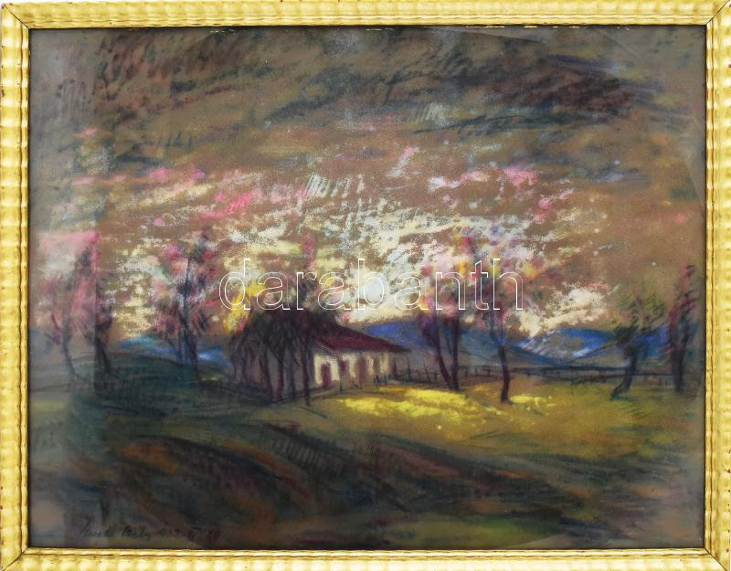 Szereda Béla (-): Hangulatos táj, 1932. Pasztell, papír. Dekoratív, üv...