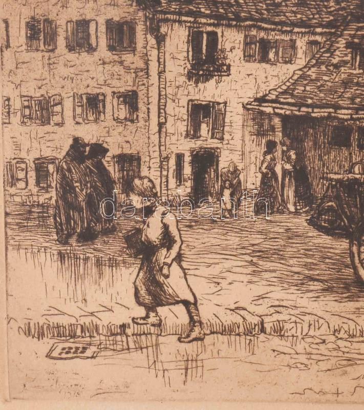 Tipary Dezső (1887-1967): Élet az utcán, 1912. Rézkarc, papír, jelzett. Fakeretben. Lap széle foltos. 29,5x39,5 cm