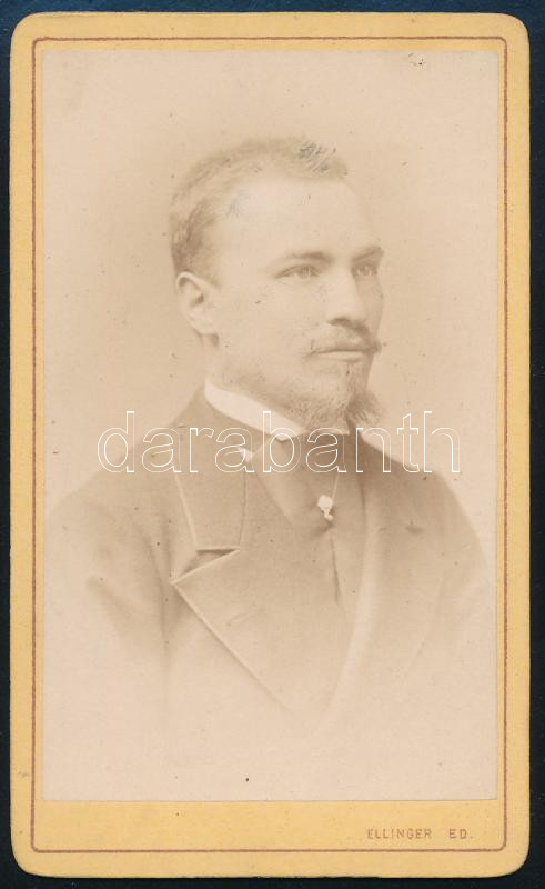 Darányi Ignác (1849-1927) jogász, agrárpolitikus, nagybirtokos, miniszter portréja, keményhátú fotó Ellinger Ede pesti műterméből, 10,5×6,5 cm