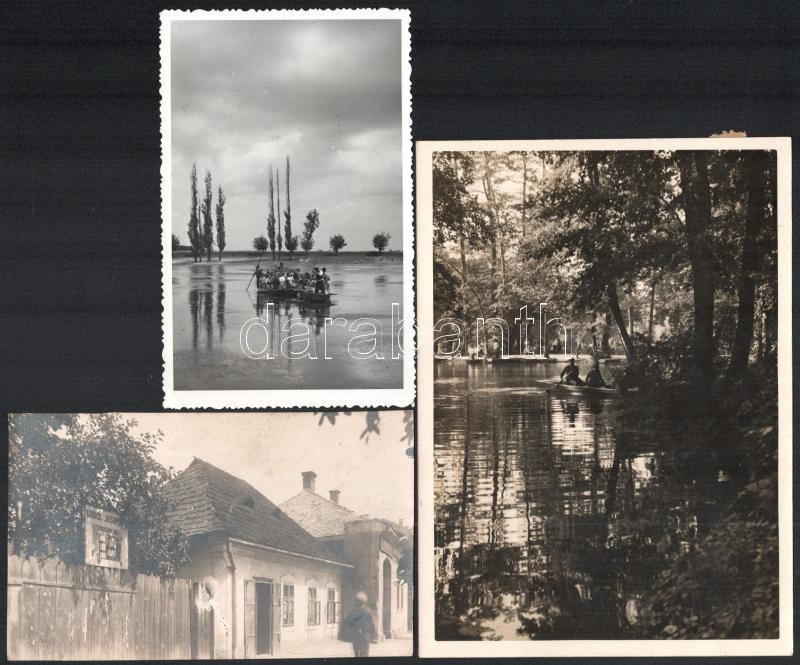 cca 1920-1940 Vegyes régi fotók (csónakázók, utcakép), az egyiken Karo...