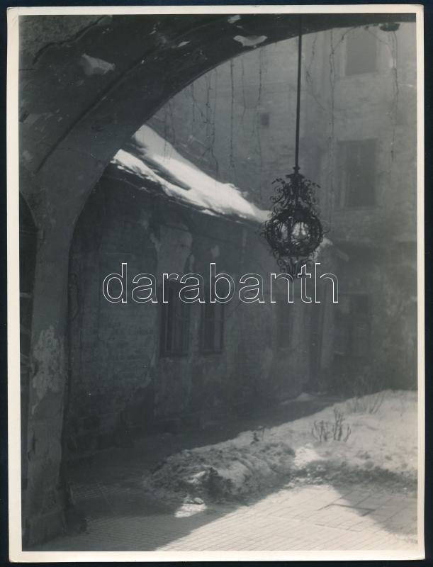Description: cca 1928 Dr. Leszl Kornél (?-?) budapesti fotóművész hagyatékából 1 db vintage fotóművészeti alkotás (Tabáni ház belső udvara), jelzés nélkül, ezüst zselatinos fotópapíron, leírva egy kisméretű kontakt nézőképről, 24x18 cm