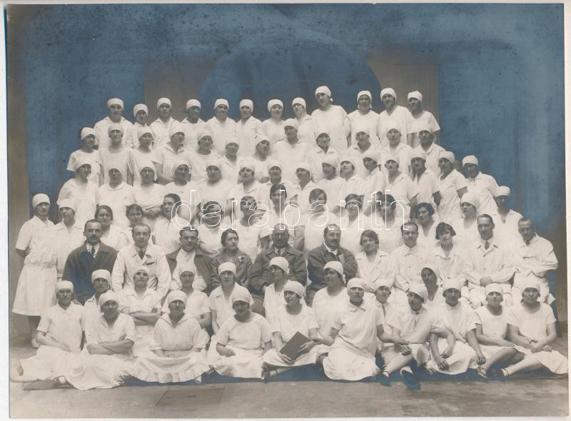 cca 1930 Védőnők és nővérek csoportképe, jelzés nélküli vintage fotó, ...