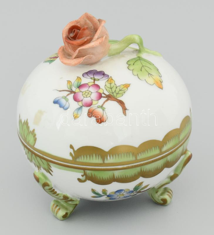 Herendi Viktória mintás bonbonier, rózsa fogóval. Jelzett, hibátlan, m: 8,5 cm
