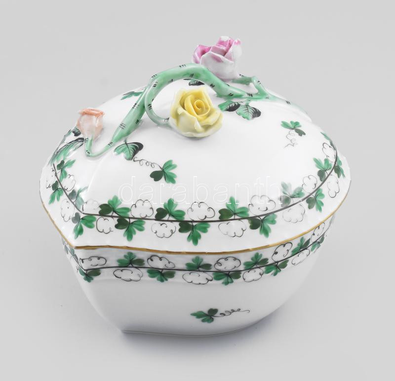 https://www.darabanth.com/en/464-Online-auction/464.0/Porcelain-ceramics-glassware/Chinaware-Porcelain~1000006/Herendi-petrezselyem-mintas-porcelan-bonbonnier-plasztikus-rozsa-diszitessel-Kezzel-festett-~II3065536