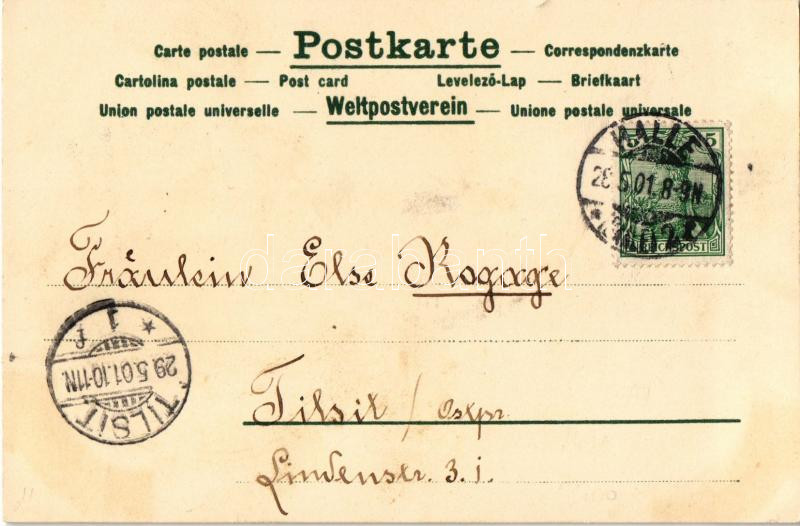 1901 Art Nouveau lady, floral. A. Sockl Wien litho (fl)