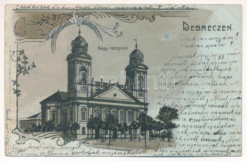 1902 Debrecen, Nagy templom este. Csokonai nyomda kiadványa 1327. Art ...