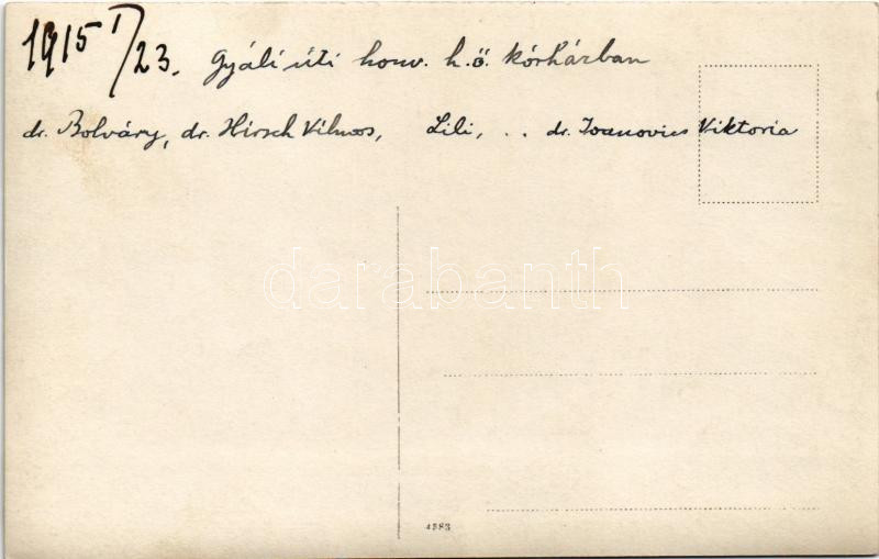 1915 Budapest IX. Gyáli úti honvéd helyőrségi kórház, dr. Bolváry, dr. Hirsch Vilmos, Lili, Dr. Joanovics Viktória. photo