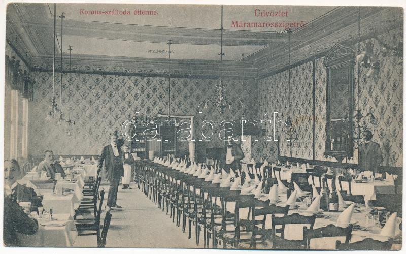 Máramarossziget, Sighetu Marmatiei; Korona szálloda étterme, belső ven... https://www.darabanth.com/en/464-Online-auction/464.0/Postcards/Transylvania~2000006/Maramarossziget-Sighetu-Marmatiei-Korona-szalloda-etterme-belso-vendegekkel-es-pincerekkel~II3079108