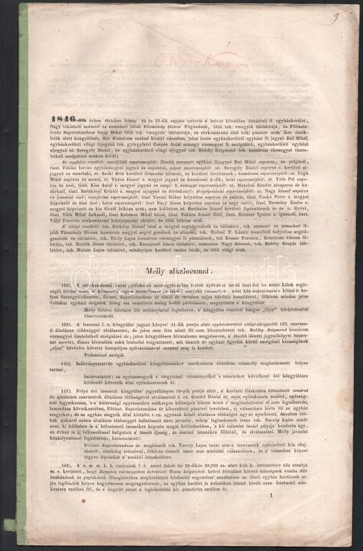 1846 Révkomárom, protestáns egyházi jegyzőkönyv, 1846. október 22-23.,...