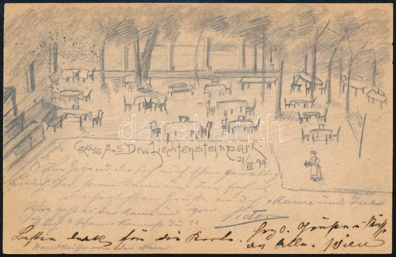 1899 Bécs (Wien), "Gruss aus dem Liechtensteinpark", kézzel rajzolt ké... https://www.darabanth.com/en/465-Online-auction/465.0/Art-and-other-collectibles/Historical-documents-manuscripts~500025/1899-Becs-Wien-Gruss-aus-dem-Liechtensteinpark-kezzel-rajzolt-kepeslap-Czullik-Bettinek-~II3138535