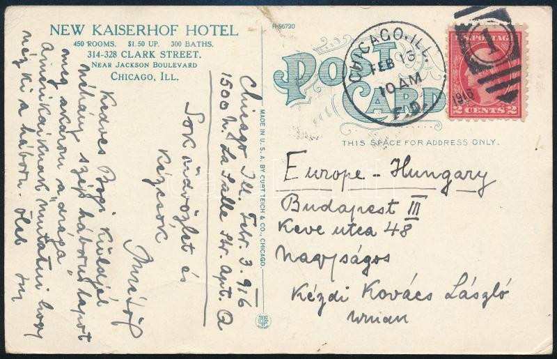 1916 Kézdi-Kovács László (1864-1942) festőművész, műkritikusnak Chicagoból feladott képeslap