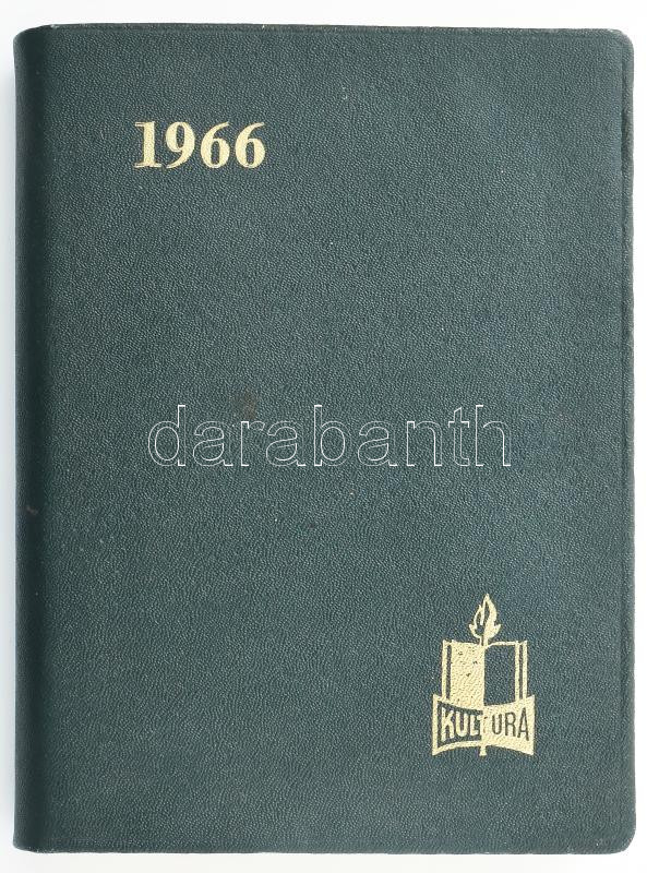 Description: 1966 Határidőnapló, benne néhány oldalon Boldizsár Iván (1912-1988) Kossuth- és József Attila-díjas író, újságíró, politikus saját kezű feljegyzéseivel