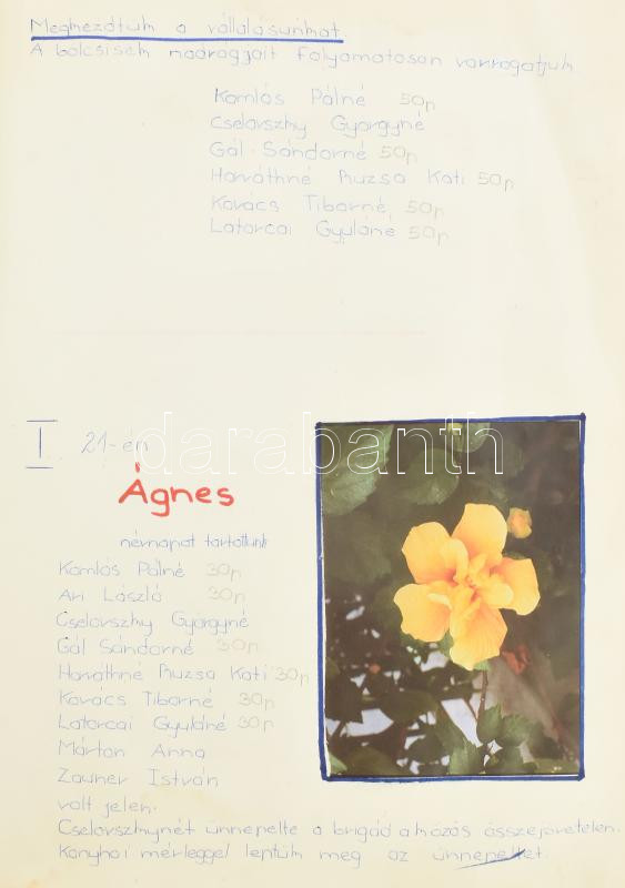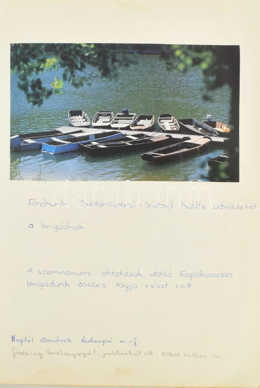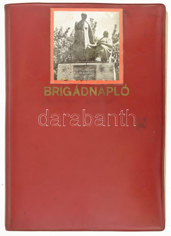 1981-1983 Brigádnapló, aranykoszorús Bolyai János szocialista brigád, benne rengeteg kézzel írt és gépelt bejegyzéssel, beragasztásokkal, a címoldalon betűzött jelvényekkel.