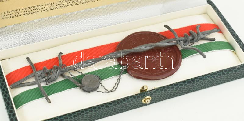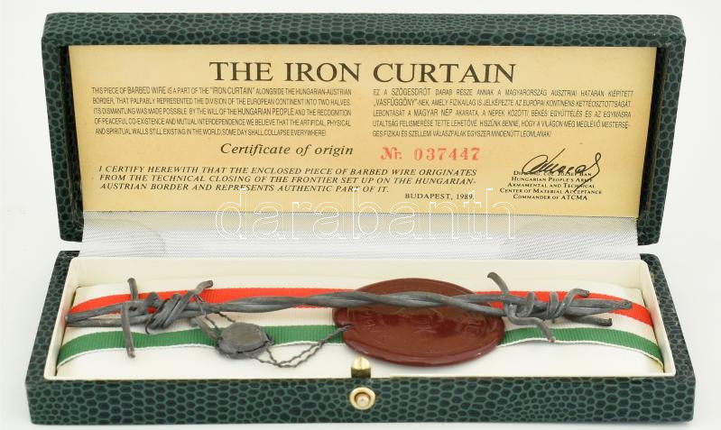 https://www.darabanth.com/en/465-Online-auction/465.0/Art-and-other-collectibles/Historical-documents-manuscripts~500025/1989-A-Magyar-Osztrak-hataron-huzodo-vasfuggony-egy-darabja-magyar-szalaggal-diszdobozban-~II3138112