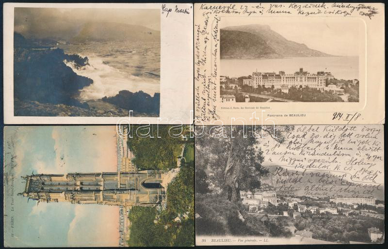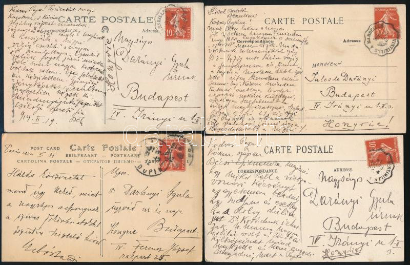 cca 1900 4 db Francia képeslap Darányi Gyula ügyvédnek (1862-1931), Darányi Kálmán későbbi miniszterelnök rokonának