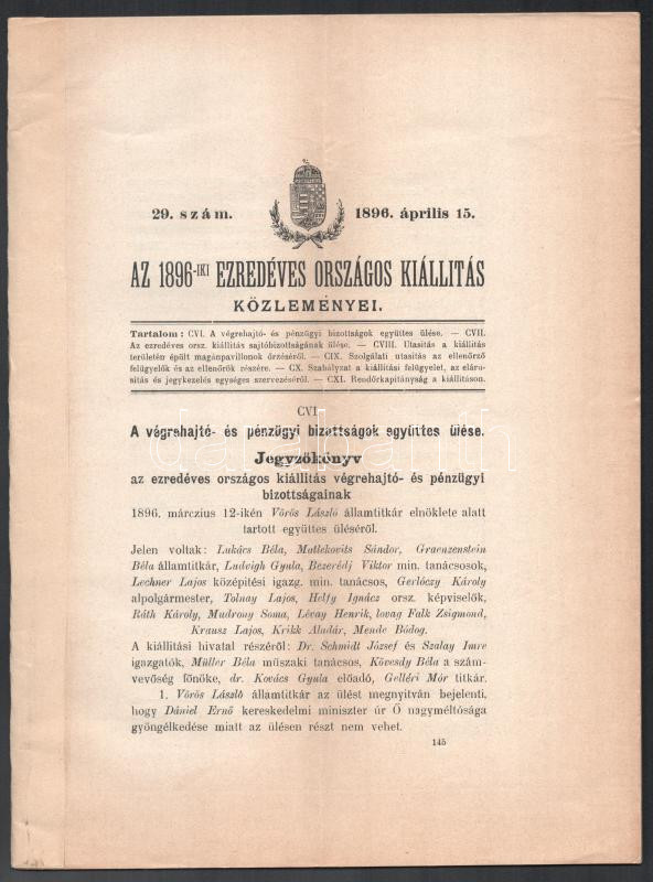 Az 1896-iki ezredéves országos kiállítás közleményei. 29. szám. 40p.