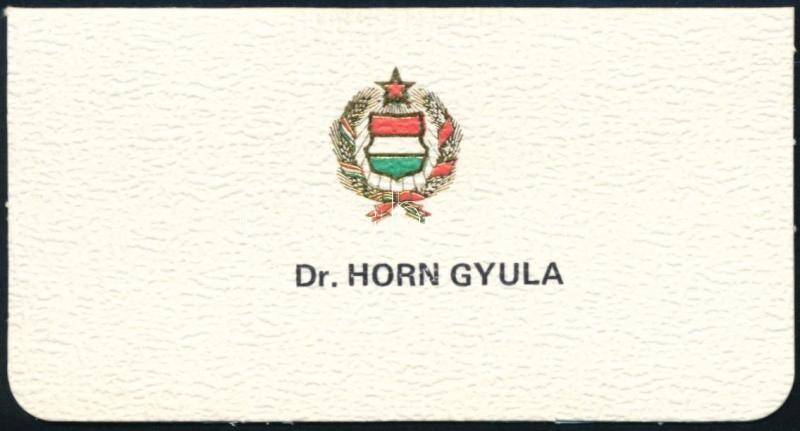 cca 1988 Dr. Horn Gyula mint külügyminiszter ültetőkártyája