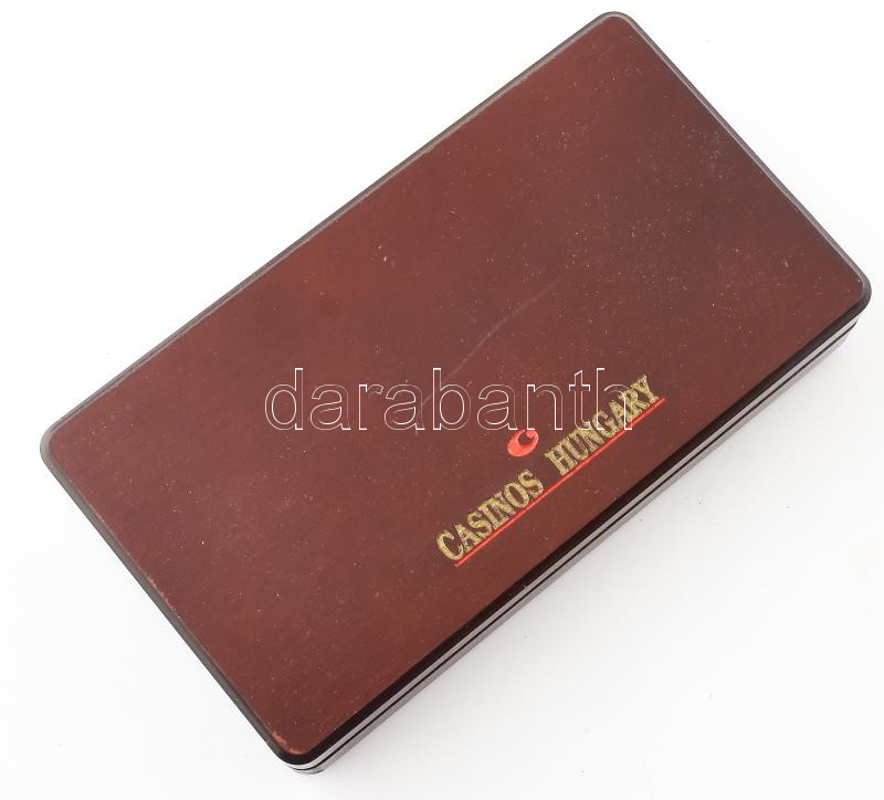 Francia kártya csomag készlet Casinos Hungary feliratos fa dobozban, kártyák bontatlanok