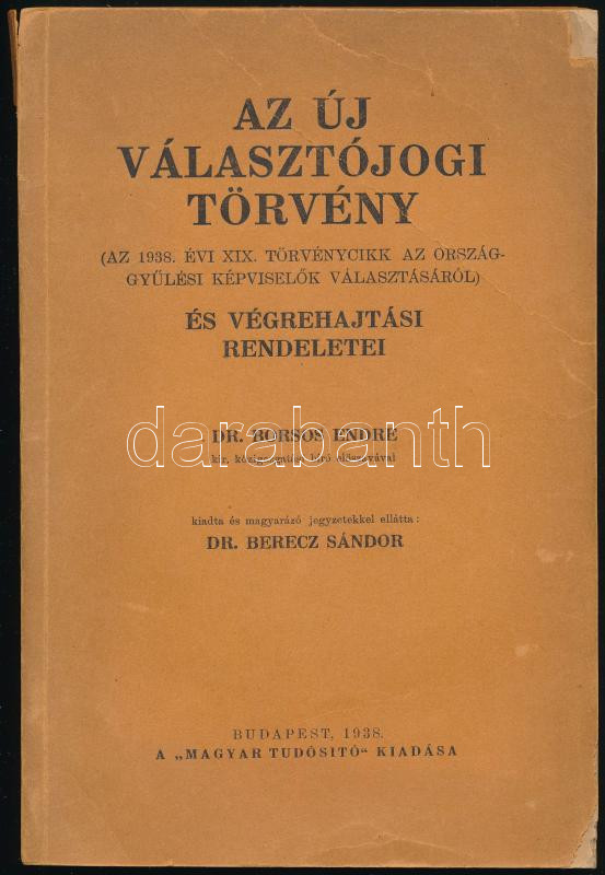 Dr. Berecz Sándor: Az új választójogi törvény (az 1938. évi XIX. törvé... https://www.darabanth.com/en/465-Online-auction/465.0/Books/Books-Law~1000018/Dr-Berecz-Sandor-Az-uj-valasztojogi-torveny-az-1938-evi-XIX-torvenycikk-az-orszaggyulesi~II3102852