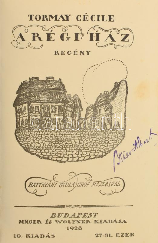 https://www.darabanth.com/en/465-Online-auction/465.0/Books/Books-Other-rarities~2500026/Tormay-Cecile-A-regi-haz-Bp-1923-Singer-es-Wolfner-Kiss-Albert-1874-1937-tulajdonosi~II3136168