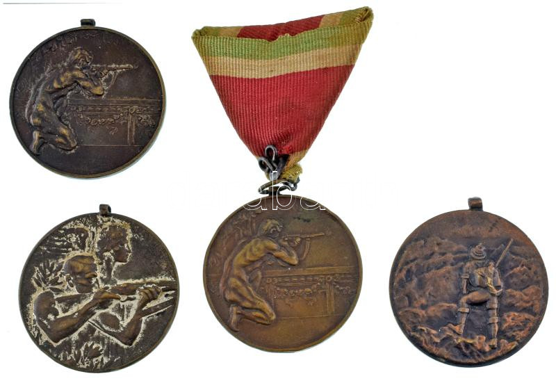 ~1930-1931. 3db kétoldalas bronz sportlövészeti díjérem, egyik mellszalagon + 1980. "Jub. túra Szoba" kétoldalas bronz emlékérem füllel T:XF
