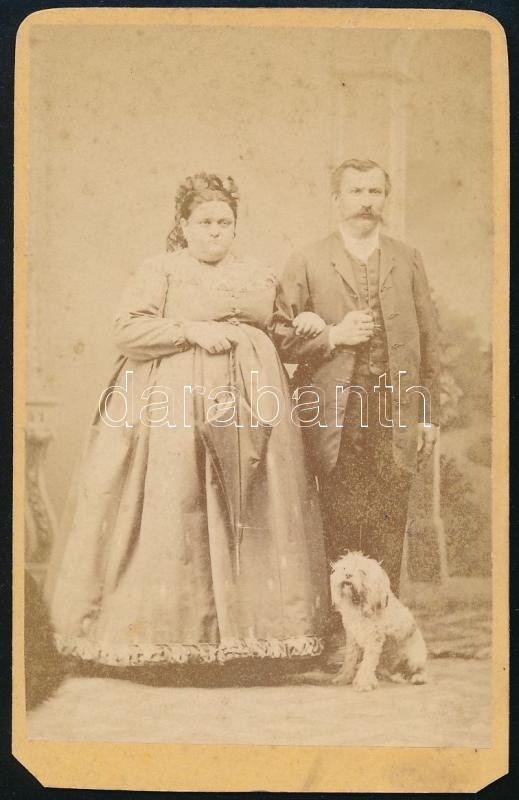 cca 1870 Házaspár kutyával, keményhátú fotó Exner Gyula pécsi műterméb...