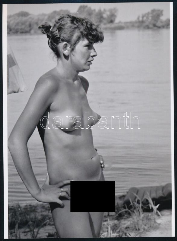 cca 1974 Nudizó a Tisza-parti fövenyen, szolidan erotikus felvétel, 1 ...