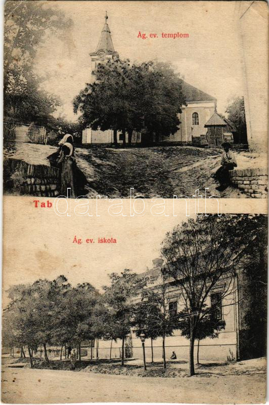 1915 Tab (Somogy), Ágostai evangélikus templom és iskola. Kapható Herc...