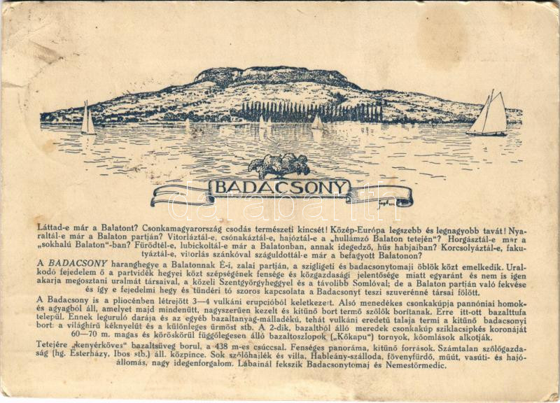 1933 Badacsony, Dr. Dornyay Béla Honismertető című képeslevelezőlap so...