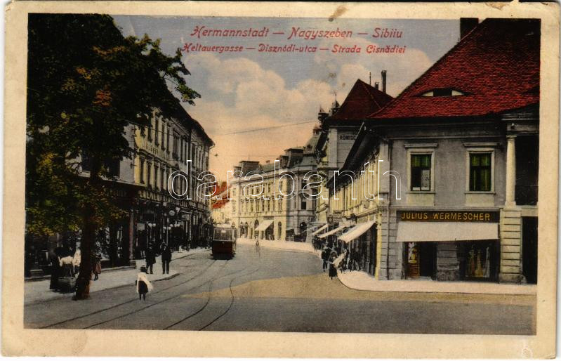 https://www.darabanth.com/en/465-Online-auction/465.0/Postcards/Transylvania~1500006/1916-Nagyszeben-Hermannstadt-Sibiu-Disznodi-utca-villamos-Julius-Wermescher-uzlete-~II3135205