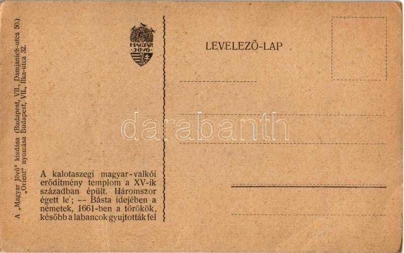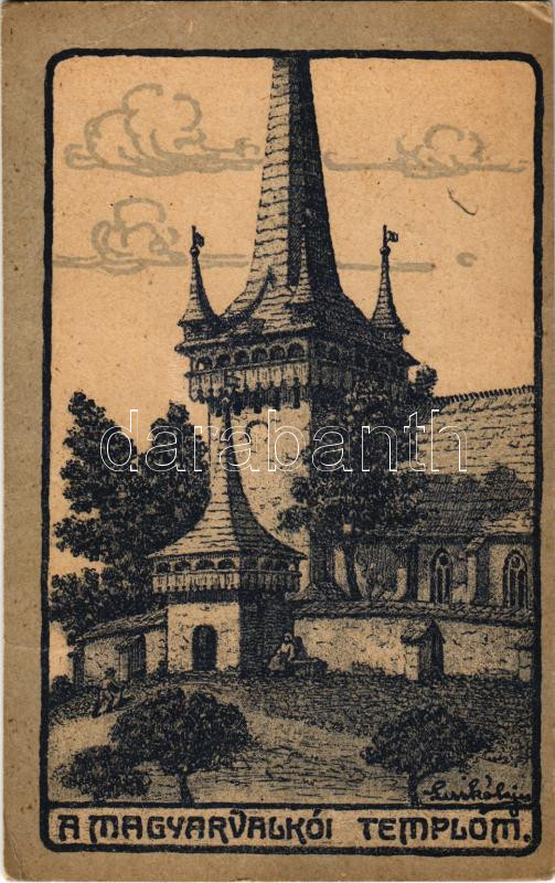 Magyarvalkó, Valeni (Kalotaszeg, Tara Calatei); erődtemplom, református templom. Kiadja a "Magyar Jövő" / Calvinist fortified church, Hungarian irredenta propaganda s: Lesskó Lajos (EB)