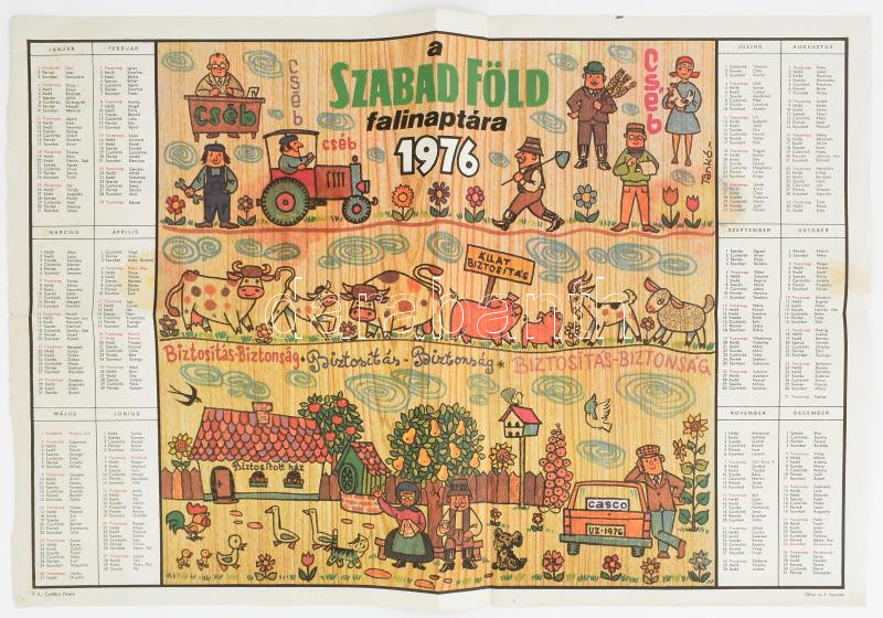 1976 A Szabad Föld falinaptára, hajtott, foltos