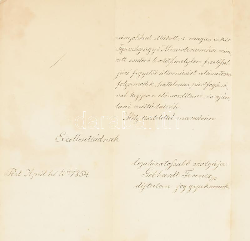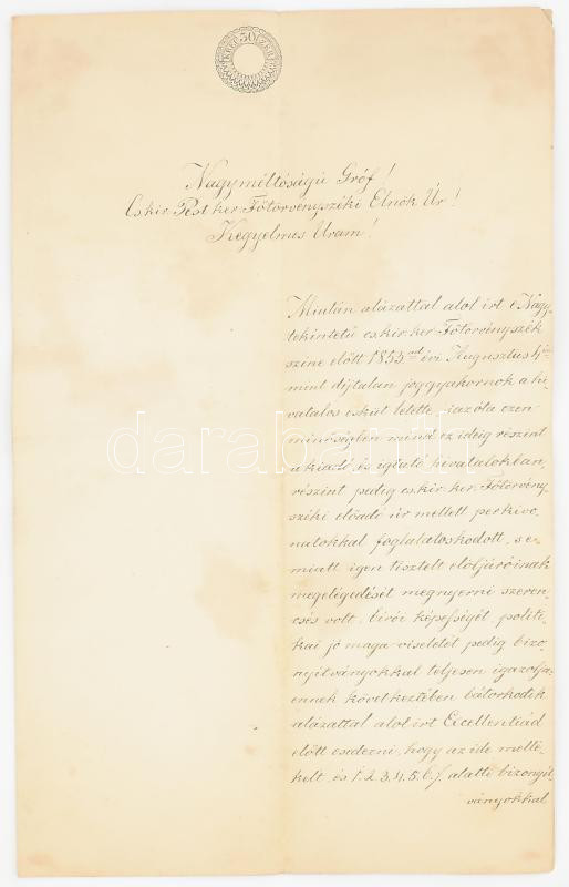 1854 Bírósági okmány gróf Nádasdy Ferenc (1801-1883) törvényszéki elnö...