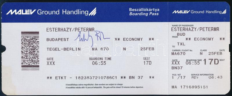 https://www.darabanth.com/en/466-Online-auction/466.0/Art-and-other-collectibles/Autographs~22/Esterhazy-Peter-1950-2016-iro-alairasa-sajat-MALEV-jegyen~II3145909