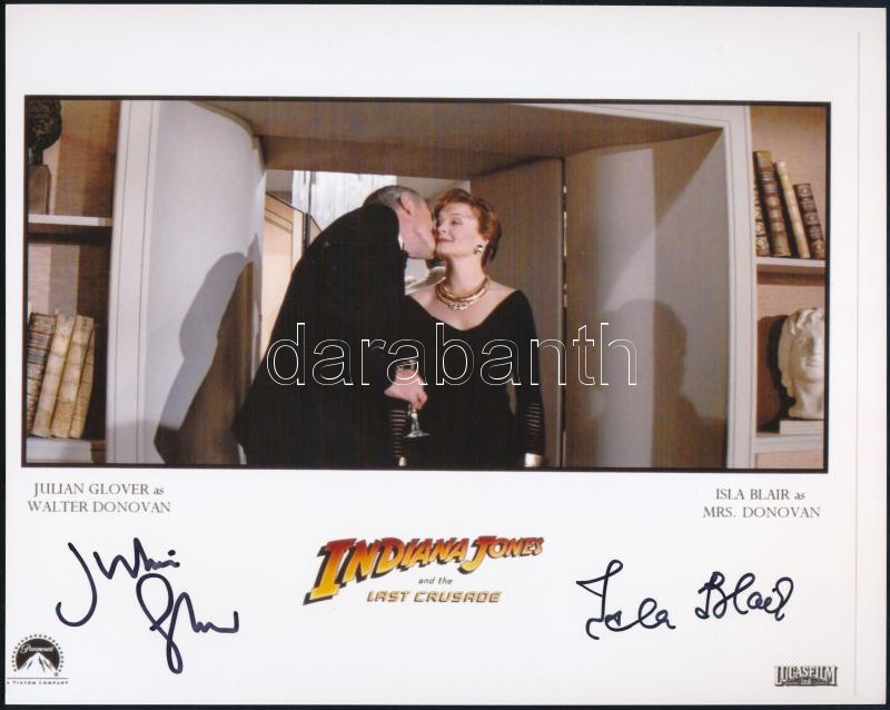 Description: Julian Glover (1935- ) brit színész és Isla Blair Glover (1944- ) brit színésznő aláírása őket ábrázoló képen (az Indiana Jones és az utolsó kereszteslovag c. filmből), tanúsítvánnyal, 25x20 cm / Julian Glover (1935- ) British actor and Isla Blair Glover (1944- ) British actress's signed photo (from 'Indiana Jones and The Last Crusade'), with certificate