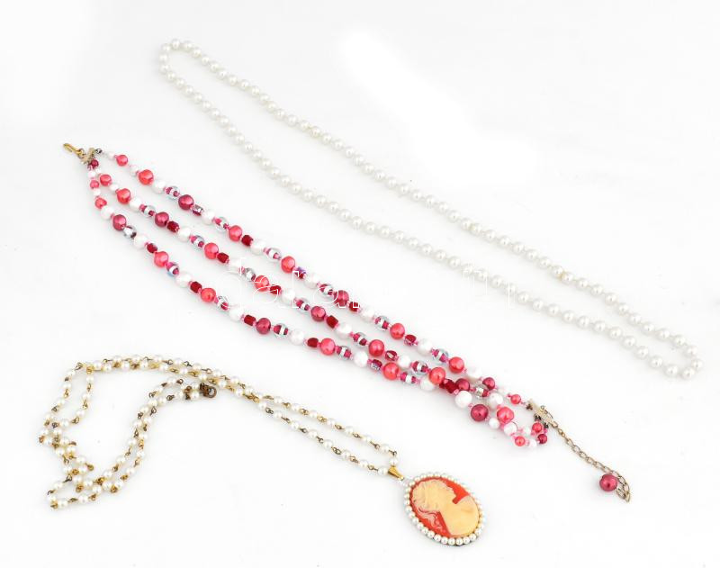 3 db bizsu gyöngysor, egyiken szintetikus kámeával