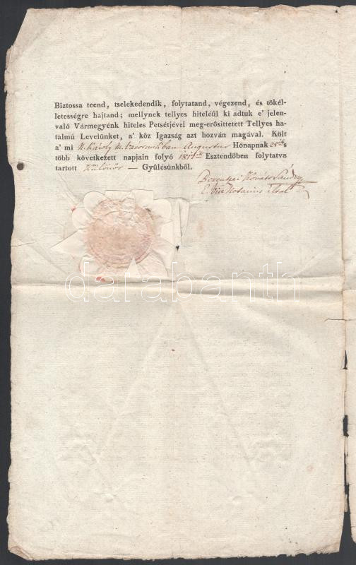 https://www.darabanth.com/en/466-Online-auction/466.0/Art-and-other-collectibles/Documents~20/1817-Szatmar-varmegye-kozygulesenek-meghatalmazasa-hiripi-Szuhanyi-Janos-reszere-Viaszpe~II3146410