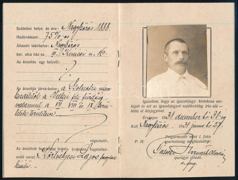 https://www.darabanth.com/en/466-Online-auction/466.0/Art-and-other-collectibles/Documents~20/1931-Fenykepes-fagylalt-arusitasi-engedely-igazolvany-szep-allapotban-Nagykoros~II3143271