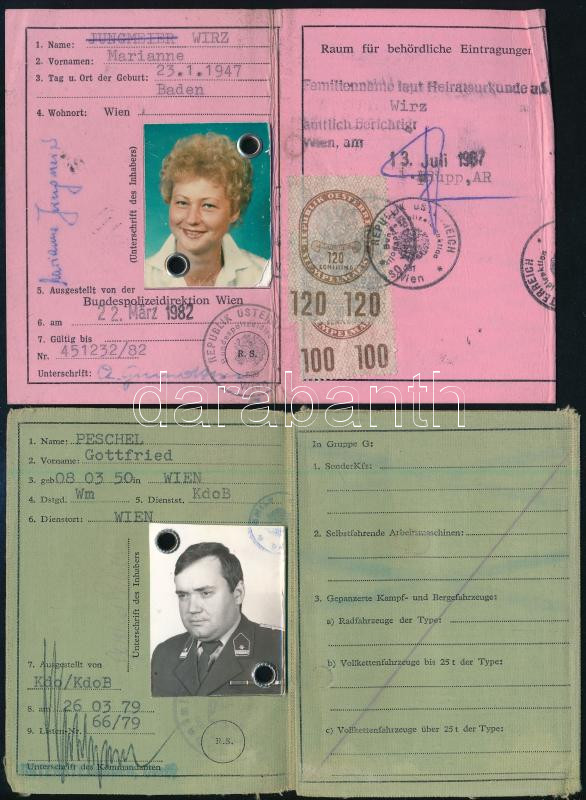 1967-1982 3 db jogosítvány, 1 db magyar és 2 db osztrák, fényképpel