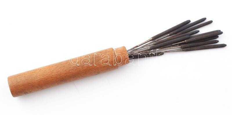 https://www.darabanth.com/en/466-Online-auction/466.0/Art-and-other-collectibles/Flea-Market~14/Dorzsar-keszlet-12-db-klf-meret-henger-alaku-fa-tokban~II3144689