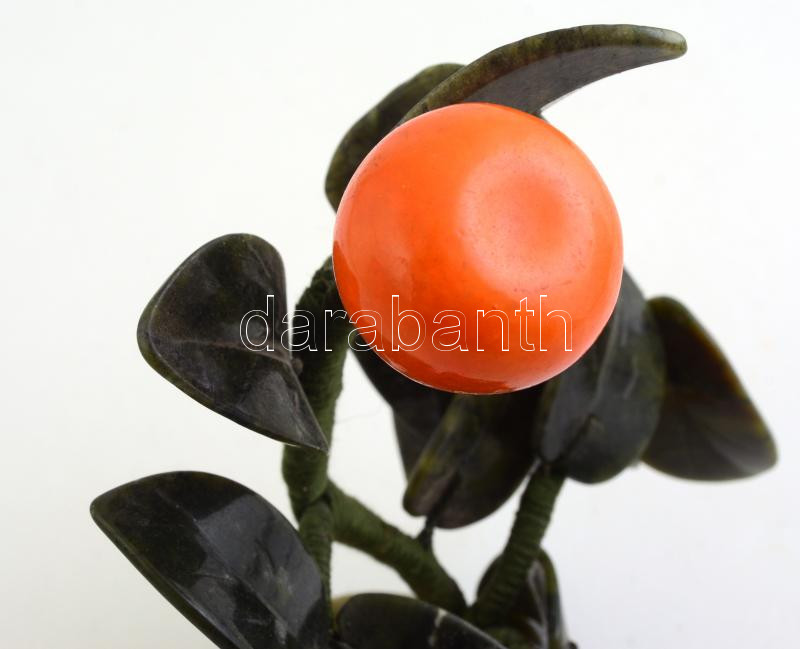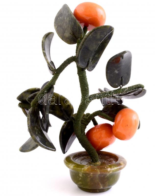 Mandarinfa. jáde levelekkel. Kína, XX. sz. Xinjang provincia. m: 19 cm