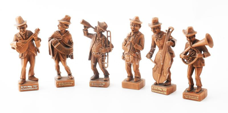 cca 1982-1987 IVV Wanderung PS Schwedelbach, német muzsikus / zenész figurák, 6 db. Műgyanta, közte egy-két sérült, m: 13 - 15 cm