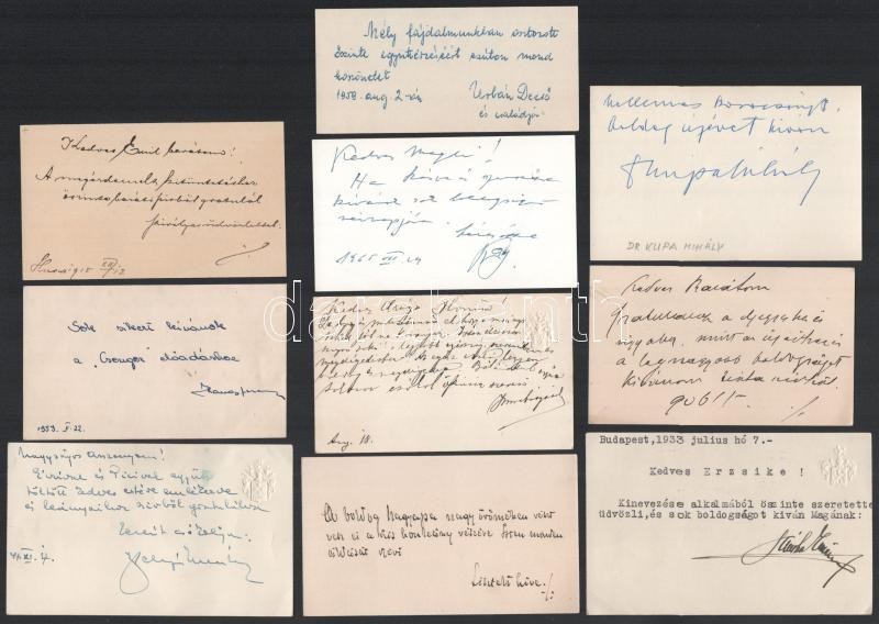 10 db névjegy- és üdvözlőkártya, mind autográf aláírásokkal és sorokka... https://www.darabanth.com/en/466-Online-auction/466.0/Art-and-other-collectibles/Historical-documents-manuscripts~21/10-db-nevjegy-es-udvozlokartya-mind-autograf-alairasokkal-es-sorokkal-kozte-Dr-Kerta~II3148752